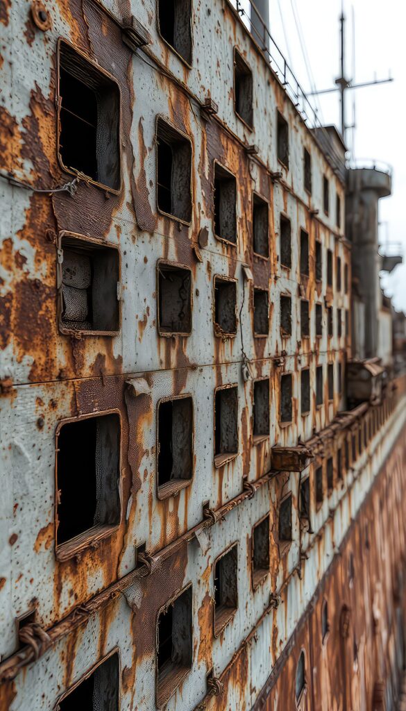 Le milieu marin représente le défi le plus complexe pour ce matériau. Les chlorures perturbent la cristallisation de la goethite et induisent une rouille poreuse, voire délaminée. À proximité immédiate du littoral, la vitesse de corrosion peut être trois à cinq fois plus élevée qu’en milieu continental, ce qui peut mener à des piqûres de corrosion sévères. De même, l’immersion permanente ou l’enfouissement sont proscrits, car l’absence de séchage empêche la densification de la patine ; le Corten se comporte alors comme un acier ordinaire.